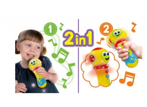 Een microfoon speciaal voor baby’s en peuters om geluidjes te ontdekken en spelenderwijs plezier te maken! Met vrolijke melodietjes en zachte lichteffecten die de zintuigen prikkelen en je kleintje helpen in de eerste ontwikkelingsfase.