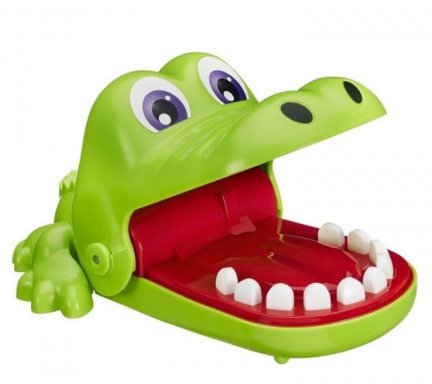 Pas op voor de bijtende krokodil! Dit superleuke Krokodil met Kiespijn spel daagt je uit die arme Japie Krokodil van z'n kiespijn af te helpen. Maar pas op, want als je op een zere kies drukt, dan hapt-ie! Je verliest als hij je bijt, maar als jij een betere tandarts bent dan de anderen win je het spel!