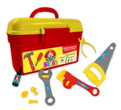 et deze kleurrijke Bumba speelgoedgereedschapskoffer beleeft jouw kindje eindeloos speelplezier! De stevige koffer bevat maar liefst 25 verschillende onderdelen, zoals een speelgoedhamer, schroevendraaiers, moeren, bouten en nog veel meer. Alles is speciaal ontworpen voor kleine handjes, veilig in gebruik en perfect om de fantasie te prikkelen.